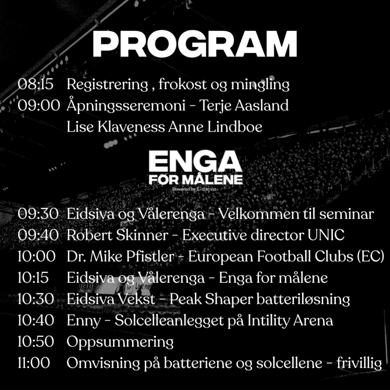 Vålerenga og Eidsiva har gleden av å invitere deg til åpningen av et nytt kapittel for Intility Arena – og for fremtidens fotball og energisystem.