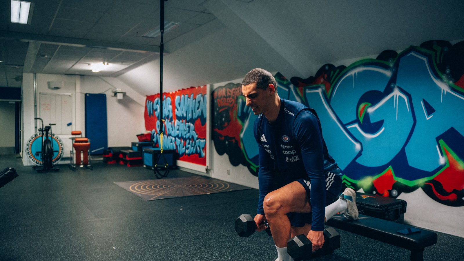 Mens lagkameratene har grønt gress under knottene, varmegrader i lufta og sol på himmelen i Tenerife, tilbringer Mohamed Ofkir hver dag i gymmen på Intility Arena.